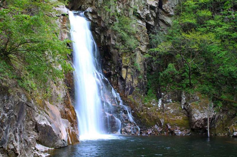 山也青,水也清,穿山越岭神河谷,小桥流水通幽境,栈道飞龙入桃园。高山峻峰站两边,五彩林立遮天树,山花山果飘淡香,幽深毓秀美山谷;蜿蜒溪水绕山梁,溅玉飞珠绝生瀑,潭瀑交错好山水。